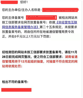 湖南管局在12月會進(jìn)行核查,所以西部數(shù)碼統(tǒng)一發(fā)送了通知提醒下用戶,如已經(jīng)放置備案號和工信部網(wǎng)址www.beian.miit.gov.cn 鏈接的用戶,則無需再進(jìn)行處理,管局再次復(fù)查時,只要查看到有備案號并鏈接至工信部網(wǎng)站的,就不會進(jìn)行處罰的,非常感謝您長期對我司的支持.由此給您帶來的不便之處,敬請原諒!謝謝!