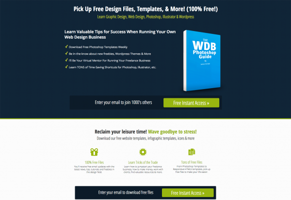 即使訪客現(xiàn)在沒有找到想要的信息,我們也可以將他們轉(zhuǎn)化為潛在的客戶。怎樣將訪客轉(zhuǎn)化為潛在的用戶?以下圖為例,只要用戶輸入郵箱地址,他們就可以免費(fèi)獲得很多設(shè)計(jì)文件和模板等,我們也可以使用類似的方法,提供一些好處(寶貴的信息、電子版文件的下載等等)獲得訪客的聯(lián)系方式。這樣我們能夠在適當(dāng)?shù)臅r(shí)候給訪客推送一些網(wǎng)站消息,與他們進(jìn)行互動(dòng)。不過要注意,索要電話號(hào)碼并不是一個(gè)好主意,因?yàn)閷?duì)大多數(shù)人來說手機(jī)號(hào)碼要更加私人,不會(huì)輕易泄露。